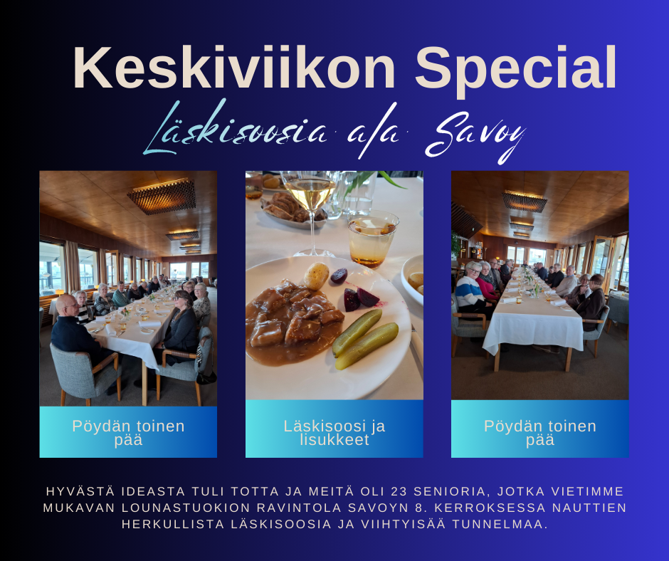 Tule mukaan meidän vireään senioritoimintaan tapaamaan toisia hengenheimolaisia sekä kuuntelemaan alustuksia eri aiheista. Luennot ovat terveydenhoidosta historiaan ja kulttuuriin, lisäksi saamme yleistietoutta ympäristömme palveluista ja tapahtumista.
