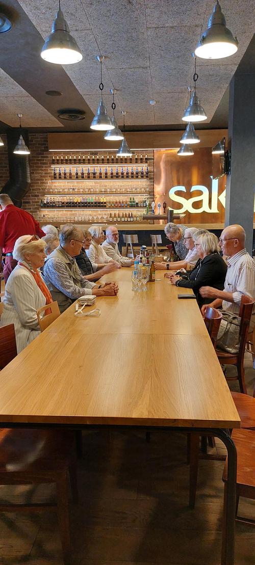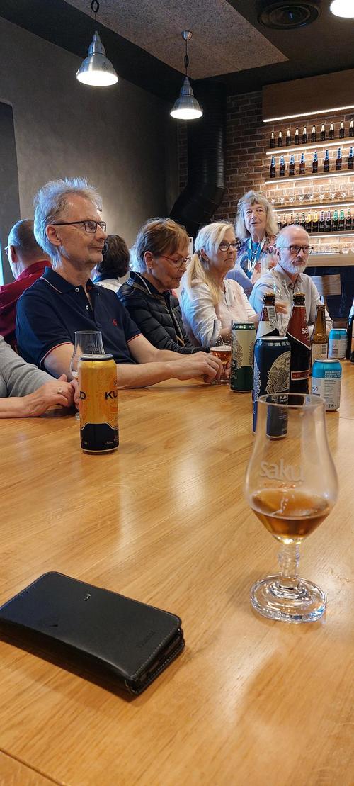 Iloisin mielin lähdimme kohti Tallinnaa. Myöhäinen aamiainen laivalla Tallinkin MyStarilla aloitti aurinkoisen päivän. Perillä tutustuimme Taidemuseo Kumuun oppaamme Aime Makken johdolla. Taidekierroksen jälkeen saimme aimo annoksen liikuntaa koluamalla mainion oppaamme Hellen perässä oluttehdas Sakun pihalla ja panimon eri kerroksissa. Juomamaistiaiset olivat ansaitut. Kerkesimme vielä pikavisiitille Sakussa olevaan Lohjan Kirkon ystävyysseurakuntaan. Päivällinen paluumatkalla maistui ja kotona perillä olimme noin 23.00. Hieno matka ja sää taas suosi.